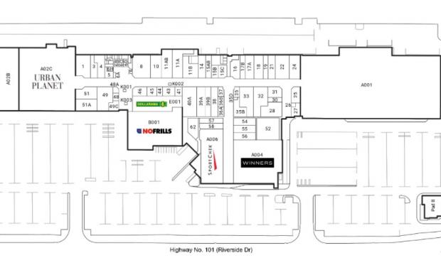 Timmins Square is predominately located on Riverside Drive, the primary commercial corridor in the region, with high daily traffic exposure and in close proximity to the Trans-Canada highway. The Centre draws a broader catchment from other parts of Northeastern Ontario such as Cochrane, Iroquois Falls, Kirkland Lake, Smooth Rock Falls, and Kapuskasing. Located at the intersection of Highway 101 (Riverside Drive) and Shirley Street, shopping centre is home to major retailers including No Frills, SportChek, Winners and Dollarama.